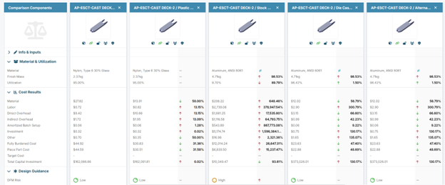 Create ‘what if’ scenarios across regions, materials, manufacturing processes and more to identify the best cost options.