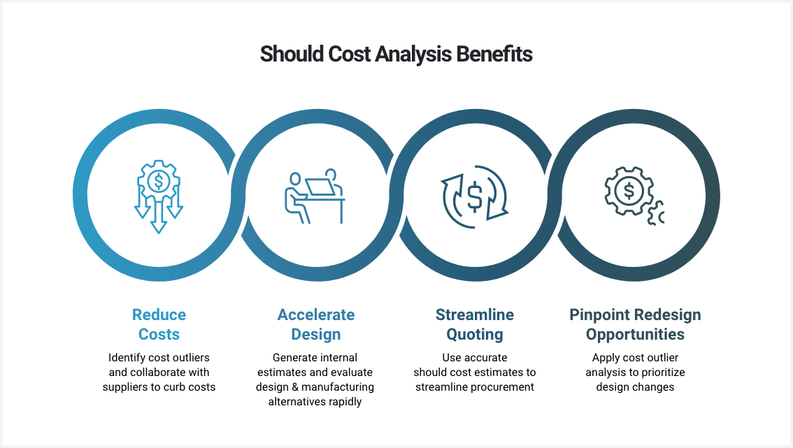 This guide provides an overview of should cost analysis — a methodology for calculating accurate cost targets for purchased products. These cost target benchmarks provide an essential foundation for more effective, fact-based supplier negotiations to reduce costs, accelerate time to market, and foster smarter designs.