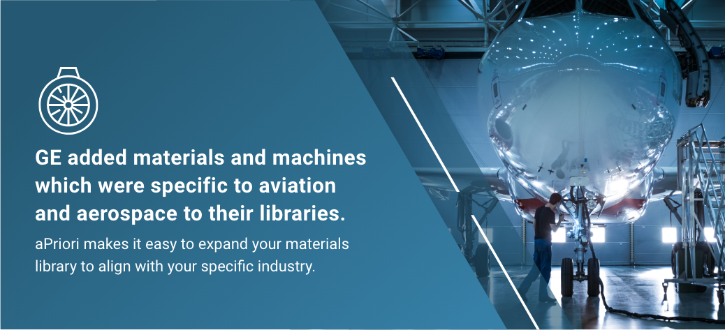 First, the manufacturer added materials and machines specific to aviation and aerospace to its libraries. aPriori makes it easy to expand materials libraries to align with specific industries.
