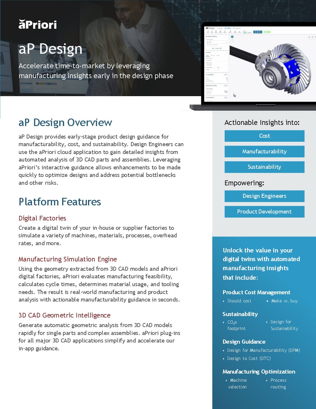 We’re looking at incorporating aPriori as a key tool to help automate these processes, which can also help analyze the design of experiments (DoE). It will help identify the cost of the design as well, and allow our Engineers to maintain the integrity of the part’s function while reducing its overall cost.