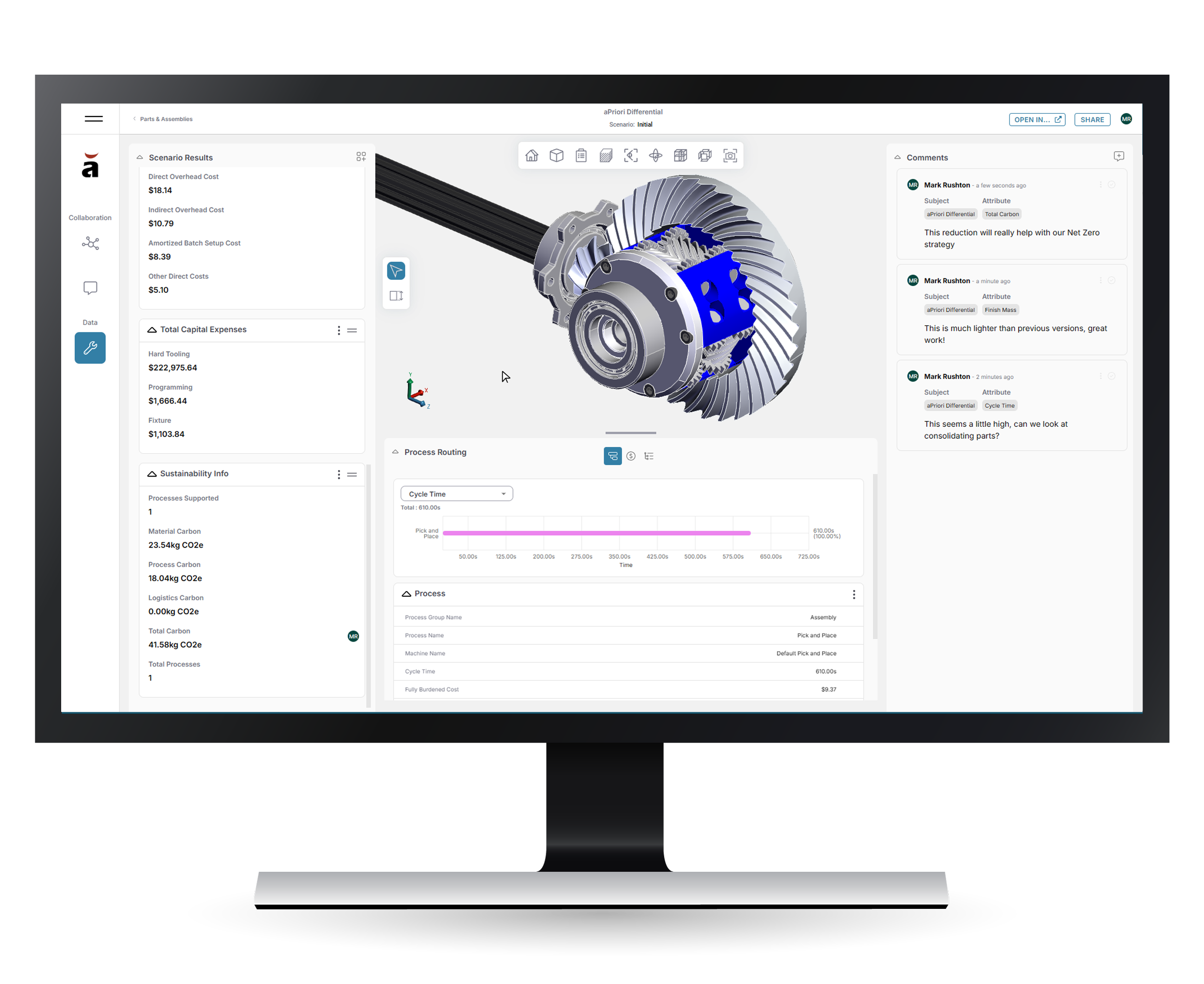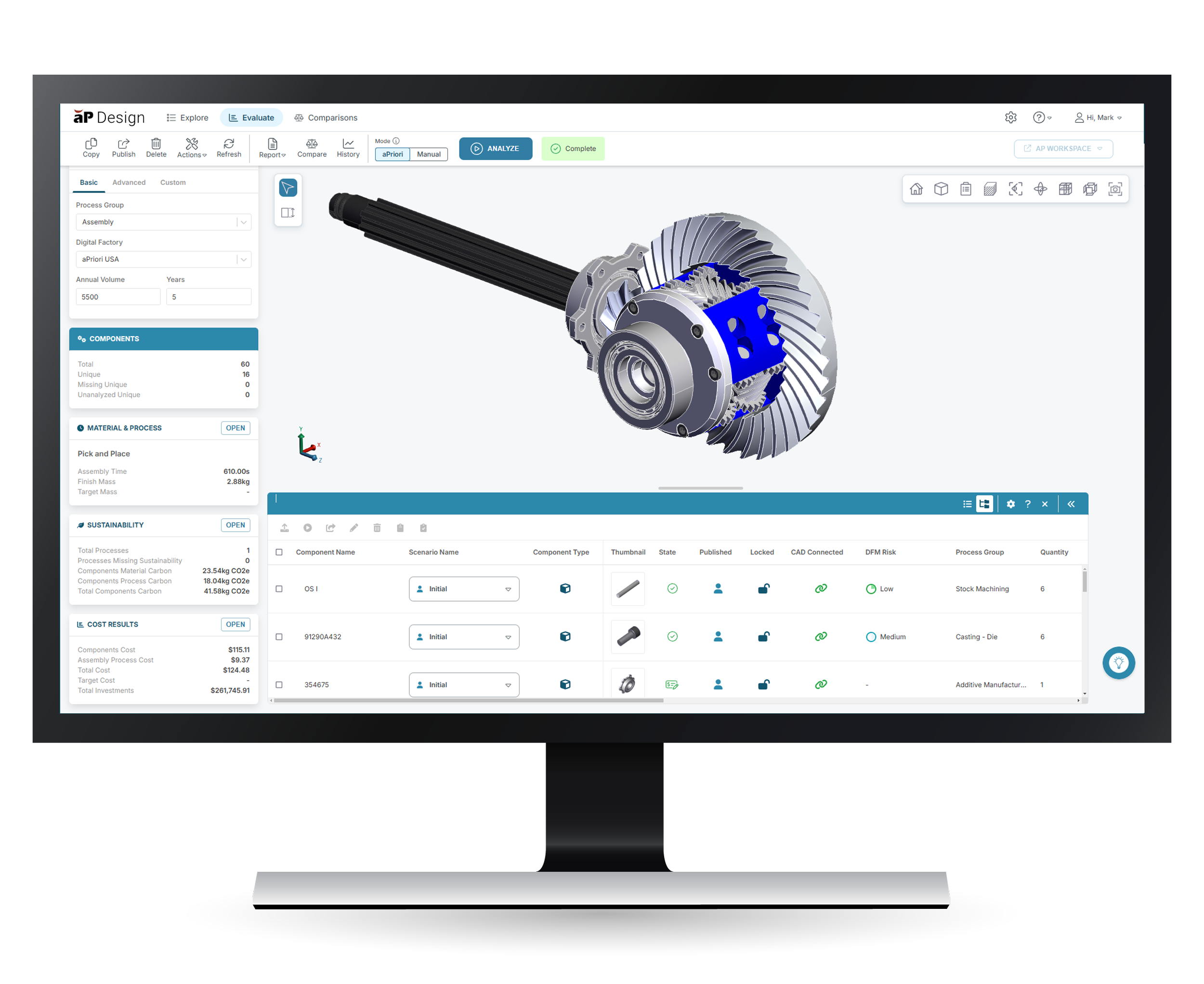 By gaining early insights into cost, carbon emissions, and manufacturability issues during the design process, aP Design enables design engineers to reduce design iterations and gain more time to focus on innovation.